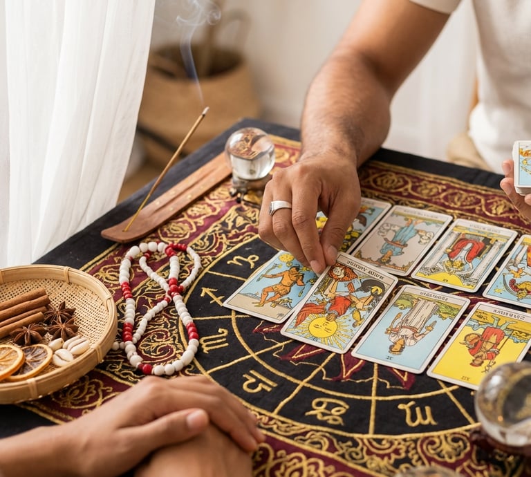 Consultas de tarô para amor, reconciliação e decisões afetivas.